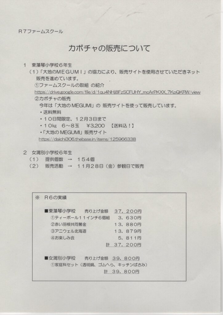 令和7年度 ファームスクール「かぼちゃの販売」実施報告 2026 3/06 地域活動 食育活動 2026年3月6日 地域活動 食育活動 よかったらシェアしてね! URLをコピーしました! URLをコピーしました! 【1/23(金)大空町開催】令和7年度オホーツク有機農業セミナーのご案内 令和7年度学校給食への食材提供のご報告